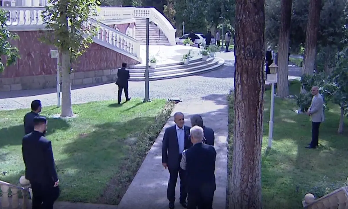 مسعود پزشکیان، رئیسجمهوری منتخب نیز دقایقی پیش، با پوششی متفاوت وارد حیاط حسینیه امام خمینی شد.