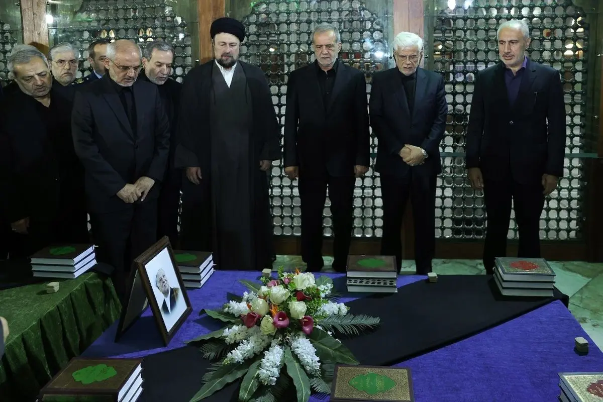 به گزارش منیبان، مسعود پزشکیان، رئیس جمهور، که امروز در مرقد امام راحل حضور یافته بود به همراه دیگر اعضای دولت چهاردهم برای قرائت فاتحه بر سر مزار آیت الله هاشمی رفسنجانی حضور یافت.