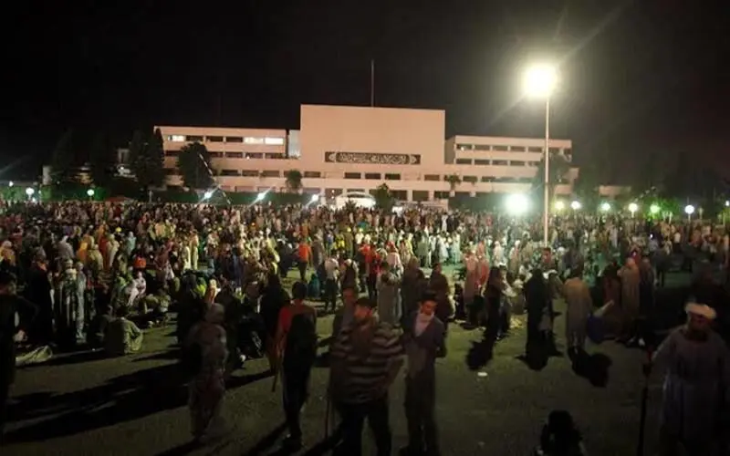 پلیس اعلام کرد که گوهر خان رییس حزب جنبش عدالت، شیر افضل مروت نماینده مجلس و شعیب شاهین مسوول ارشد این حزب مرتکب نقض تعهدات خود شدند که طی آن قرار بود اجتماع روز گذشته طرفداران عمران خان در راس ساعت مقرر شده به پایان برسد.
