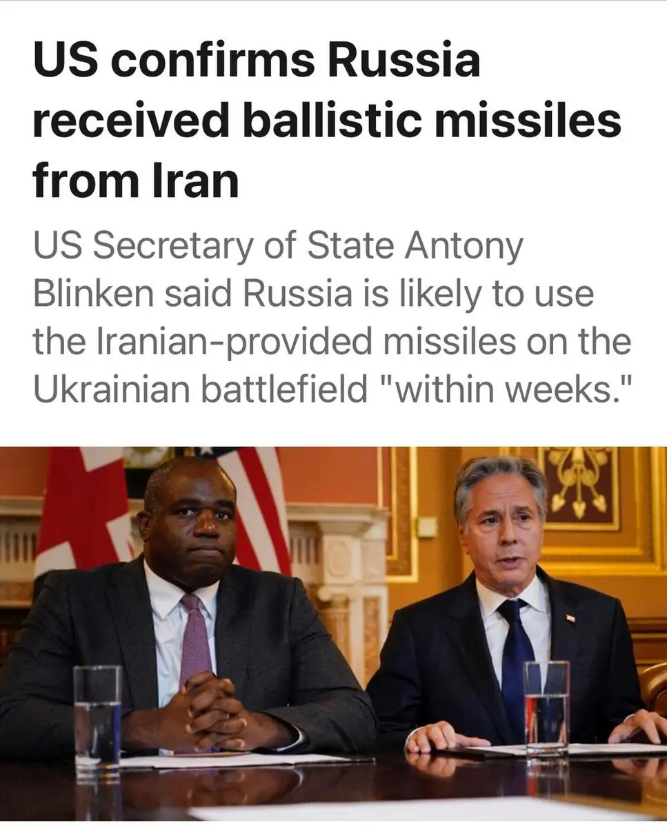به گزارش منیبان، آنتونی بلینکن، وزیر خارجه آمریکا تایید کرد که روسیه محمولههایی از موشکهای بالستیک از ایران دریافت کرده و احتمالاً به زودی از آنها در اوکراین استفاده خواهد کرد.