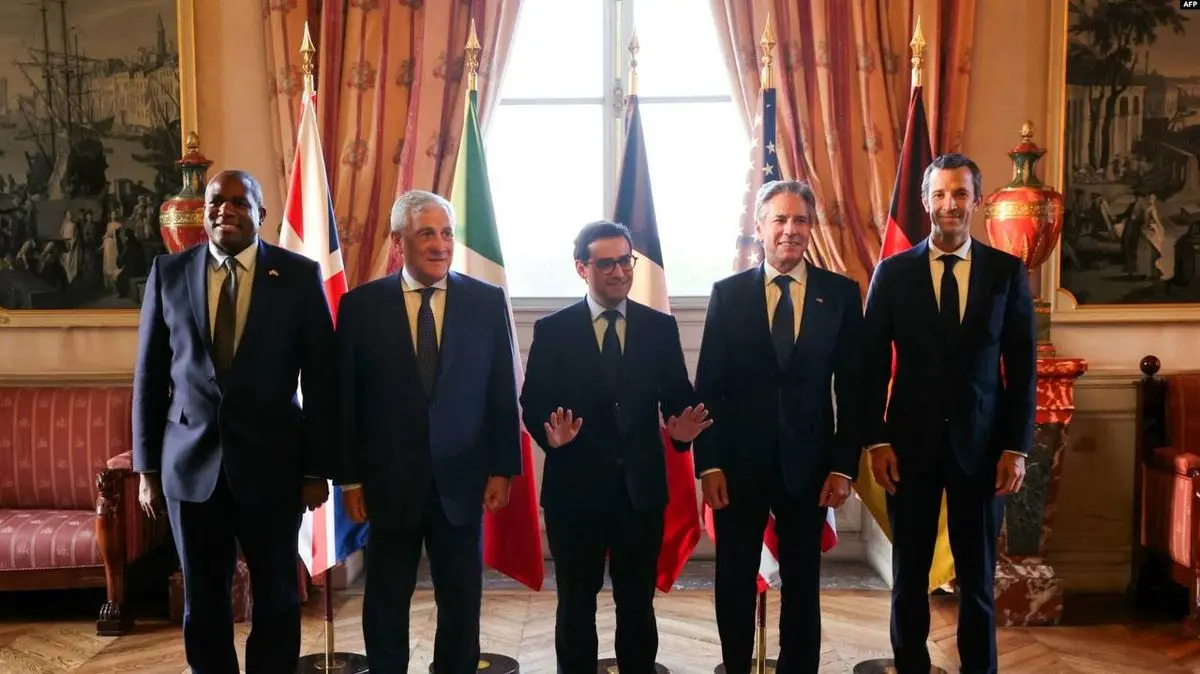 در این نشست که در پاریس برگزار شد، علاوه بر بلینکن، دیوید لمی وزیر امور خارجه انگلیس، آنتونیو تاجانی وزیر امور خارجه ایتالیا، استفان سژورن وزیر امور خارجه فرانسه، و گونتر ساتر مدیرکل سیاسی وزارت امور خارجه آلمان، حضور داشتند.