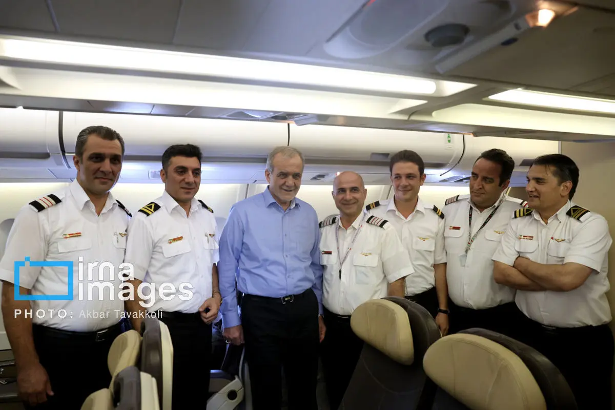 عکس یادگاری مسعود پزشکیان با کادر پروازی در مسیر نیویورک + ببینید