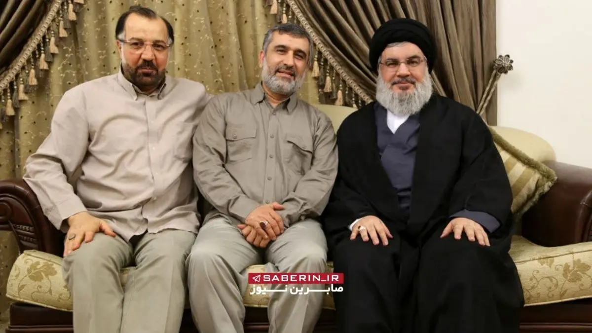تصویری از سردار امیرعلی حاجیزاده، فرمانده هوا و فضای سپاه در کنار شهید سید حسن نصرالله و فؤاد شکر برای اولین بار منتشر شد.