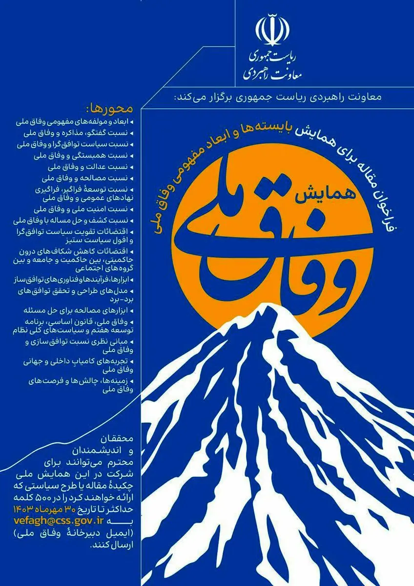 فراخوان مقاله برای همایش «بایستهها و ابعاد مفهومی وفاق ملی» منتشر شد.