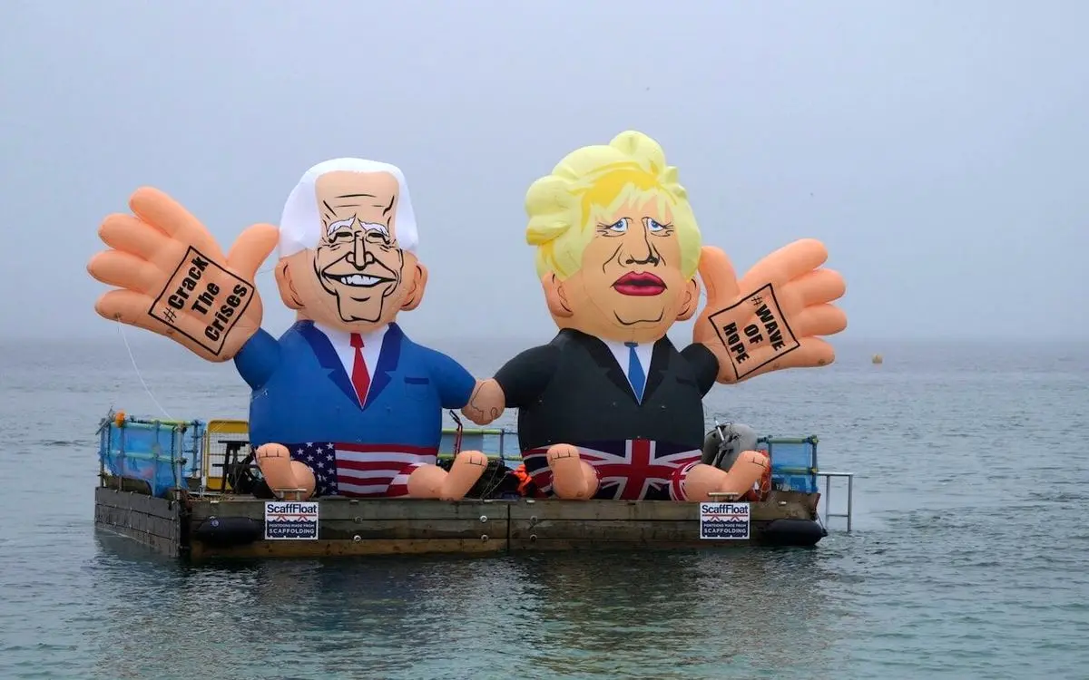ائتلاف موسوم به «در برابر گروه ۷ مقاومت کن» که از چندین گروه معترض تشکیل شده هشدار داده که برای برگزاری تظاهرات سنگینی در روزهای پیشرو برنامهریزی کرده است. گروهی از معترضان دو بالون غولپیکر بوریس جانسون نخست وزیر انگلیس و جو بایدن رئیس جمهوری را در سواحل کورنوال به صورت شناور به حرکت درآوردهاند.