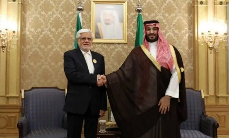 دیدار عارف و بن سلمان در ریاض/ تاکید بر روابط دو جانبه میان ایران و عربستان