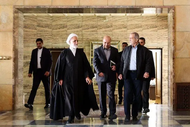 به گزارش منیبان، بعد از ظهر شنبه 10 آذر 1403 نشست مشترک سران قوا باحضور مسعود پزشکیان، محمدباقر قالیباف و غلامحسین محسنی اژهای به میزبانی رئیسجمهور در نهاد ریاست جمهوری برگزار شد.