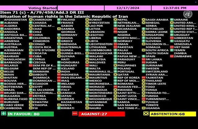 قطعنامه ضدایرانی حقوق‌بشری در مجمع عمومی سازمان ملل تصویب شد.