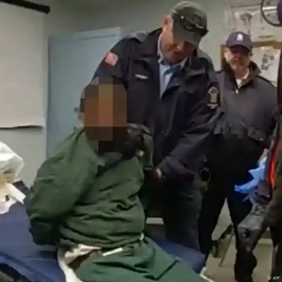در ویدئوی منتشر شده دیده میشود که چندین مرد سفیدپوست ابتدا این زندانی را که به او دستبند زده شده بود، از محوطه بیرونی به داخل زندان میبرند و روی یک تخت قرار میدهند.