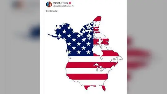 رئیس جمهور منتخب آمریکا تصویری را در شبکههای اجتماعی به اشتراک گذاشت که در آن کانادا بهعنوان بخشی از خاک ایالات متحده نشان داده میشود.