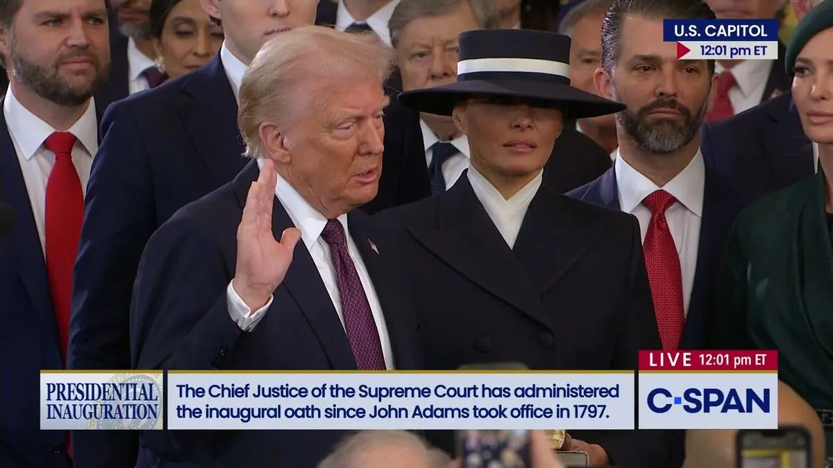 دونالد ترامپ به عنوان چهل و هفتمین رئیس جمهور ایالات متحده آمریکا پس از پیروزی در انتخابات ریاست جمهوری ۵ نوامبر ۲۰۲۴ ، لحظاتی پیش بعنوان رئیس جمهور جدید این کشور در میان تدابیر شدید امنیتی و در ساختمان کنگره سوگند یاد کرد.