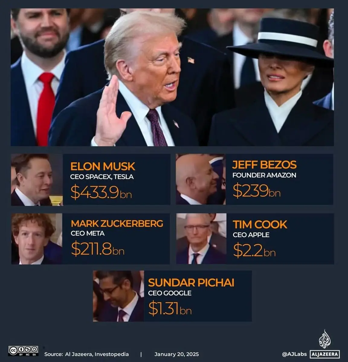 ثروتمندانی که در صف اول مراسم تحلیف ترامپ ایستاده بودند + میزان دارایی