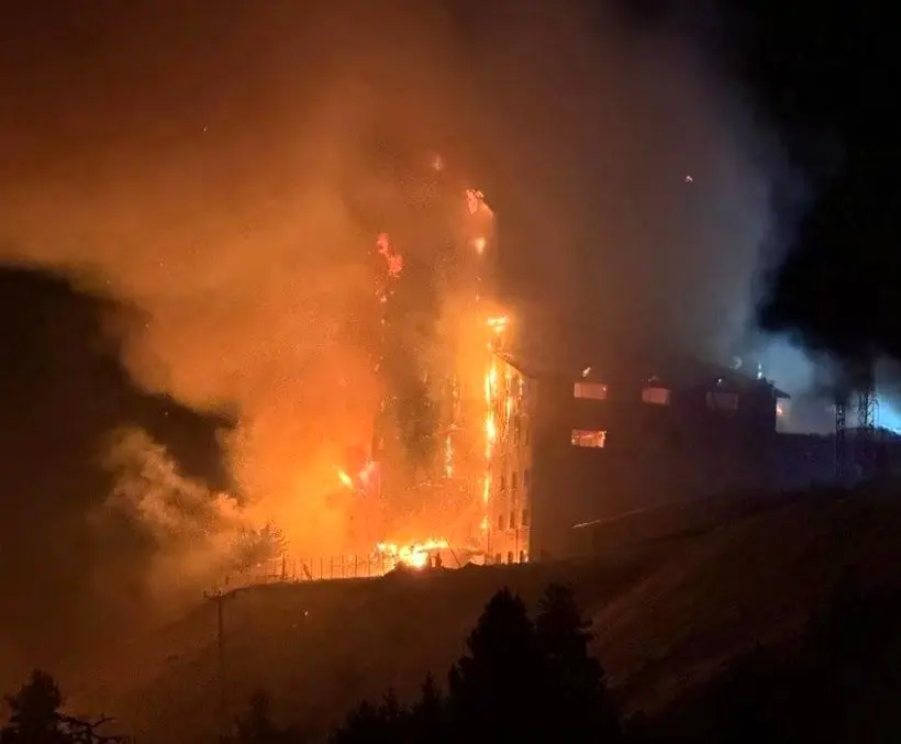 بامداد امروز سه شنبه خبرگزاریهای محلی تصاویری از آتش سوزی در هتل پیست اسکی کارتال کایا واقع در شهر بولو ترکیه منتشر کردند.