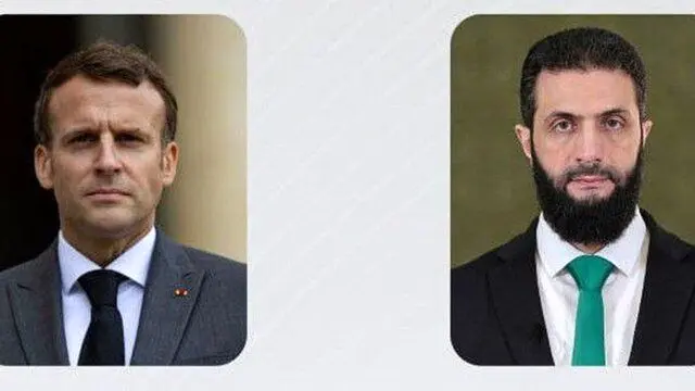 به گزارش منیبان، ریاست جمهوری سوریه با صدور بیانیه‌ای اعلام کرد که امانوئل ماکرون، رئیس جمهور فرانسه با «احمد الشرع» سرکرده تحریر الشام ملقب به «ابومحمد الجولانی» رئیس جمهور موقت سوریه تماس تلفنی برقرار کرد.