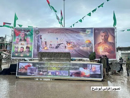 نیروهای مقاومت فلسطین که در حال آماده سازی جایگاه مراسم برای اجرای هفتمین دور تبادل اسرا با رژیم صهیونیستی هستند مانند دورهای گذشته سلاحهای غنیمت گرفته شده از نظامیان صهیونیست را به نمایش درآوردند.