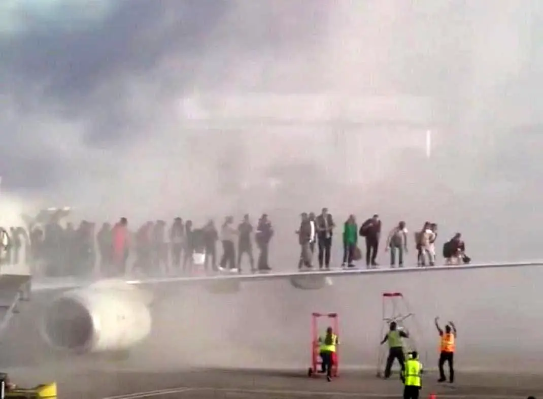 به گزارش منیبان، مسافران یک پرواز امریکن ایرلاینز در فرودگاه دنور کلرادو به دلیل آتشسوزی در هواپیما و انتشار دود تخلیه شدند. فیلم تخلیه نشان میدهد که مسافران روی بال هواپیمای بوئینگ جمع شدهاند و تعدادی کیسه در دست دارند و شعلههای آتش در نزدیکی پایین هواپیما میسوزد.