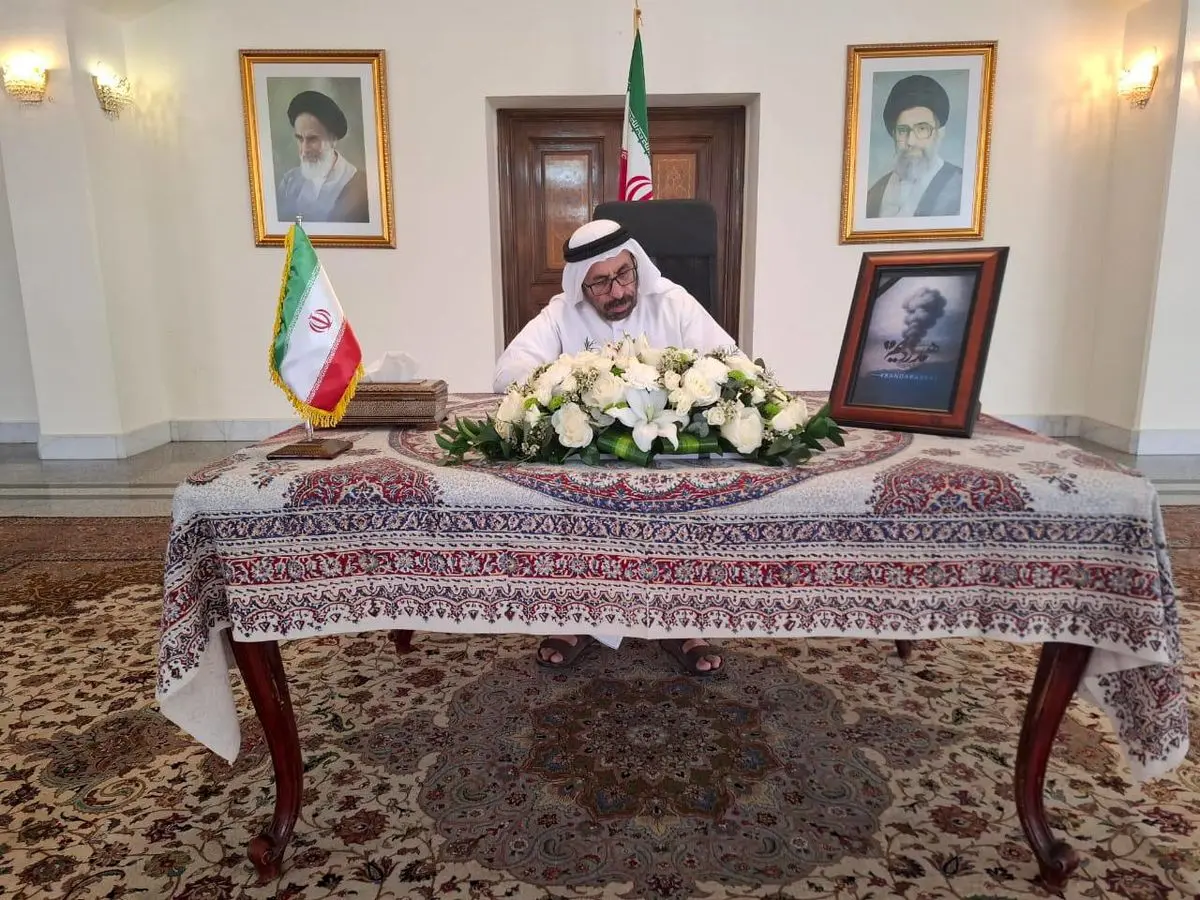 به گزارش منیبان، خلیفه الشاهین المرر، وزیر مشاور در امور خارجی به نمایندگی از وزیر امور خارجه، ضمن ابلاغ تسلیت دولت امارات متحده عربی، دفتر یادبود را امضاء و با ابراز همدردی با دولت و ملت ایران برای جانباختگان طلب مغفرت و برای مجروحان حادثه، آرزوی بهبودی و شفای عاجل کرد.