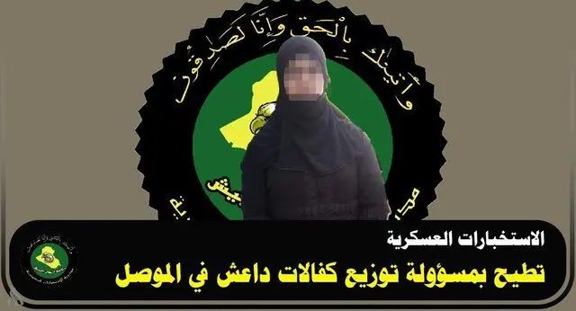 به گزارش منیبان، در بیانیهای از سوی این اداره که توسط خبرگزاری عراق (واع) دریافت شده، آمده است: «در یک عملیات ویژه، بر اساس دادههای دقیق اطلاعاتی از اداره اطلاعات نظامی و با هماهنگی اداره اطلاعات و مبارزه با تروریسم قیاره، یگانهای اطلاعات نظامی لشکر ۱۶ پیاده نظام، پس از نظارت میدانی و کمین برنامهریزیشده، توانستند یک تروریست زن که مسؤول توزیع ضمانتنامه برای اعضای داعش در موصل بود را دستگیر کنند. طبق ماده ۱/۴ قانون تروریسم، حکم بازداشت علیه او صادر شد.»