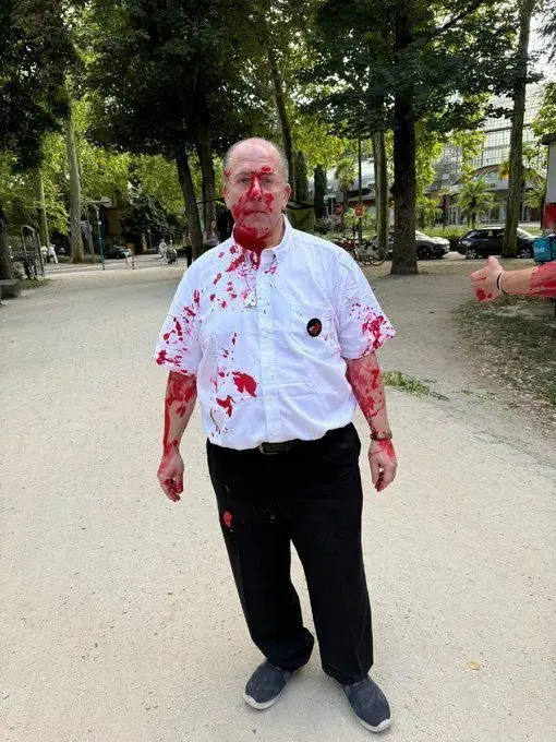 پاشیدن رنگ قرمز بر روی یک اسرائیلی در آلمان