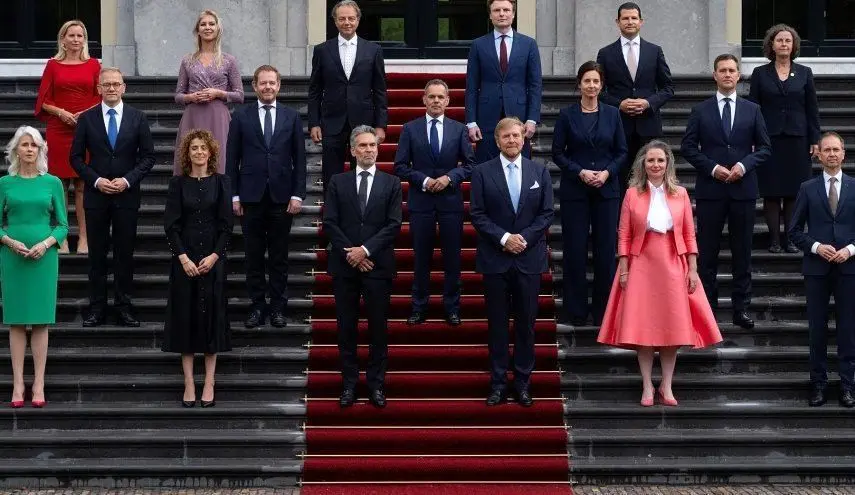 وزیران باقی‌مانده از حزب حاکم در دولت هلند، پس از آنکه کاسپر ولدکمپ (وزیر امور خارجه) استعفای خود را به دلیل مانع‌تراشی دولت در اجرای اقدامات بیشتر علیه اسرائیل اعلام کرد، از سمت خود استعفا کردند.