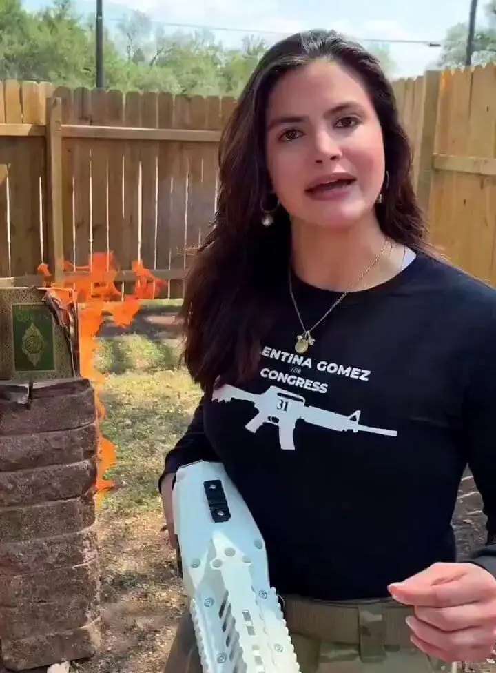 والنتینا گومز، نامزد جمهوریخواه انتخابات کنگره آمریکا، از تگزاس در اقدامی نفرت افکنانه ویدیویی از خود در شبکه ایکس منتشر کرد که طی آن، قرآن را آتش می زند.