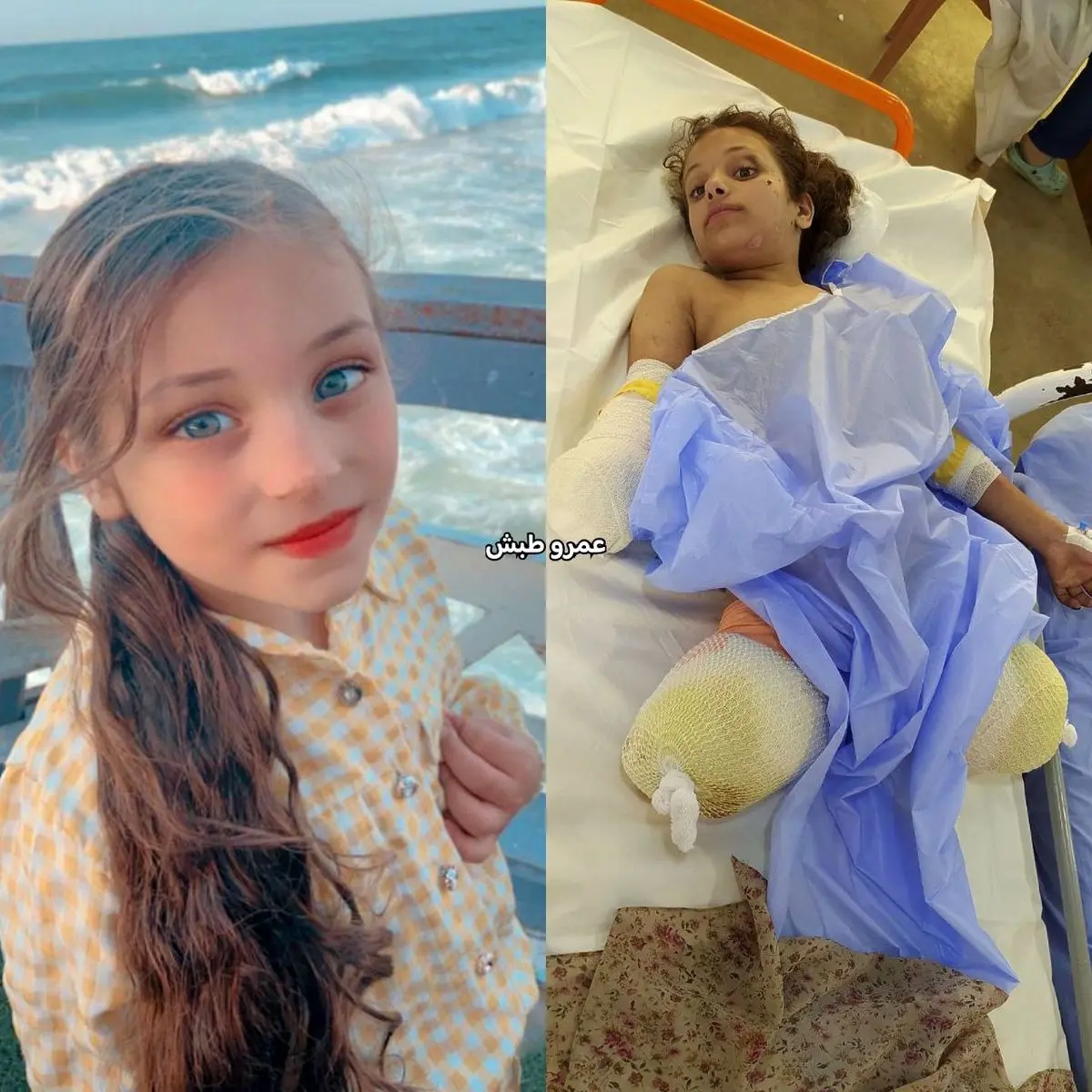 دختر ۱۰ ساله فلسطینی، در پی بمباران رژیم صهیونیستی هر دو پای خود را بالای زانو و یکی از دستانش را از دست داده است.