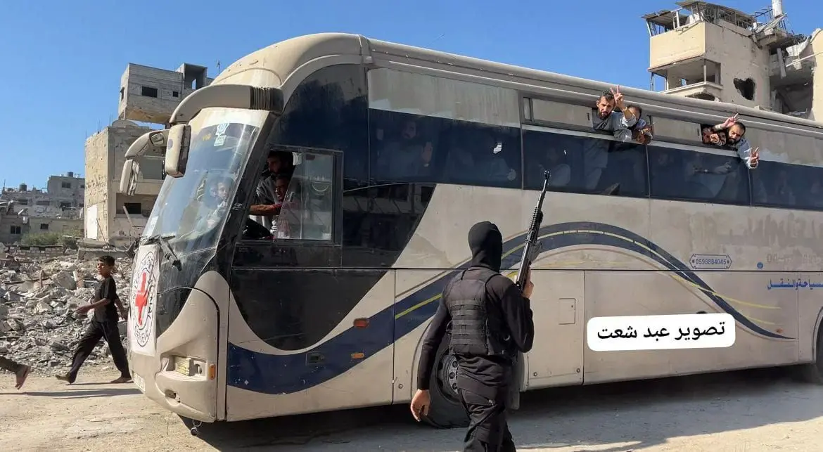 اتوبوسهای حامل اسرای فلسطینی آزادشده در چارچوب توافق مبادله اسرا موسوم به «طوفان الاحرار ۳»، لحظاتی پیش به بیمارستان ناصر در خانیونس در جنوب نوار غزه رسیدند.