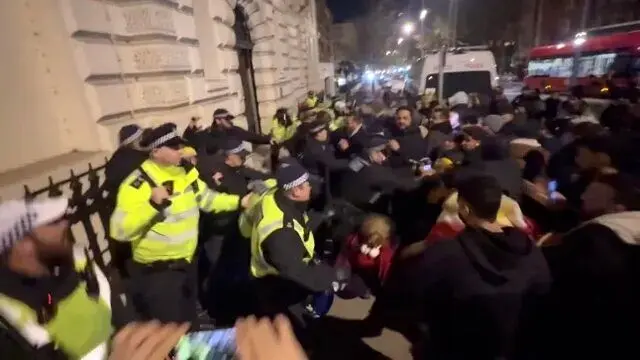در پی تجمع خشونت‌آمیز برخی عناصر در مقابل سفارت ایران در لندن و حمله آن‌ها به پلیس، چند نفر بازداشت شدند.