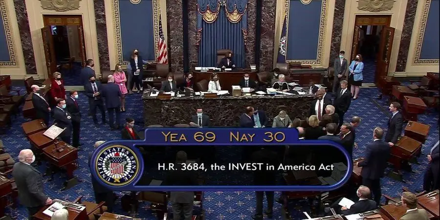 برای تصویب این طرح در سنا نیازمند حداقل ۶۰ رای موافق بود تا از "اطاله دادرسی" در صحن مجلس سنا جلوگیری شود. این نخستین طرح و سپس قانون زیرساخت ها در دولت جو بایدن به شمار خواهد رفت.