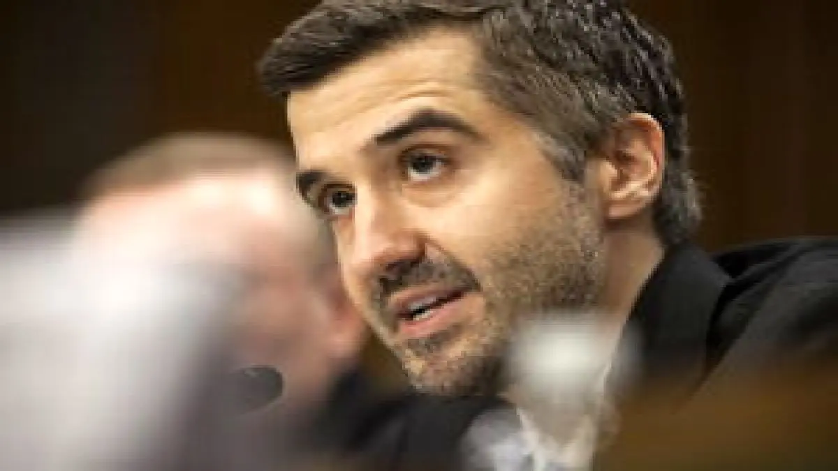 «رامین طلوعی» دستیار وقت وزیر خزانه‌داری آمریکا در امور مالی و توسعه‌ی بین‌المللی در حال شهادت طی جلسه‌ای در کنگره در سال ۲۰۱۵