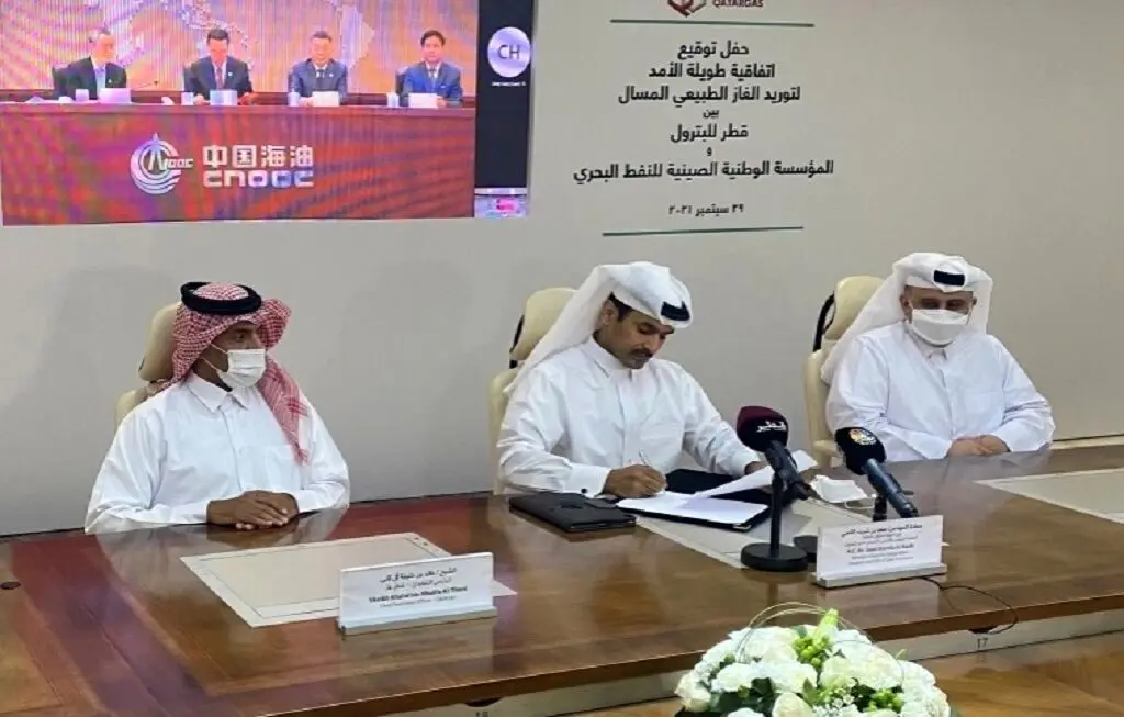 شرکت ملی نفت و گاز قطر (قطر پترولیوم) برای فروش گاز مایع به چین با شرکت بازرگانی، بازاریابی گاز و انرژی چین ( CNOOC ) زیر مجموعه شرکت نفت فلات قاره این کشور قرارداد ۱۵ ساله امضا کرد.