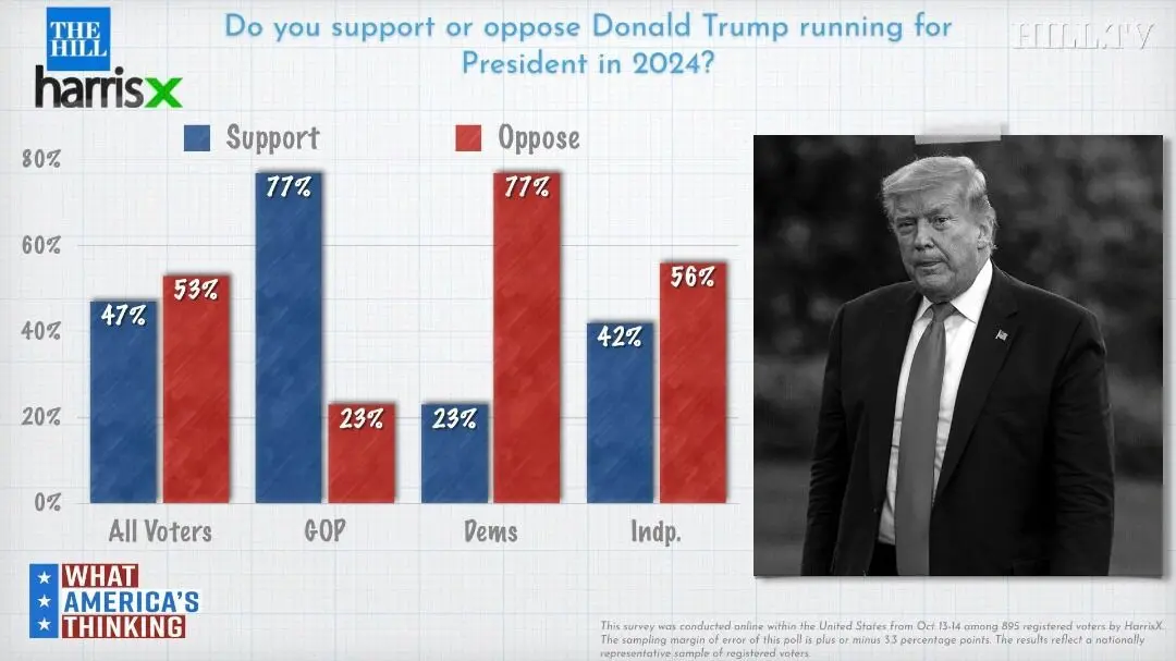 نتایج نظرسنجی بیانگر آن است که ۴۷ درصد از رای دهندگان ثبت نام شده در نظرسنجی ۱۳ تا ۱۴ اکتبر (۲۱-۲۲ مهرماه) اعلام کرده اند که از ایده حضور ترامپ در رقابت های بعدی ریاست جمهوری حمایت می کنند در حالی که ۵۳ درصد از پاسخ دهندگان با این کار وی مخالف هستند.
