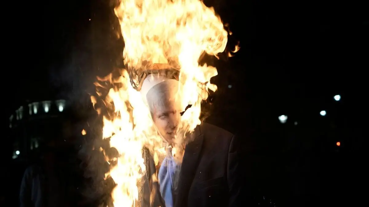 صدها تن از معترضان ضد دولت انگلیس جمعه شب با برپایی تظاهرات در خیابانهای مرکزی لندن، تصویر «بوریس جانسون» نخست وزیر این کشور را به آتش کشیدند.