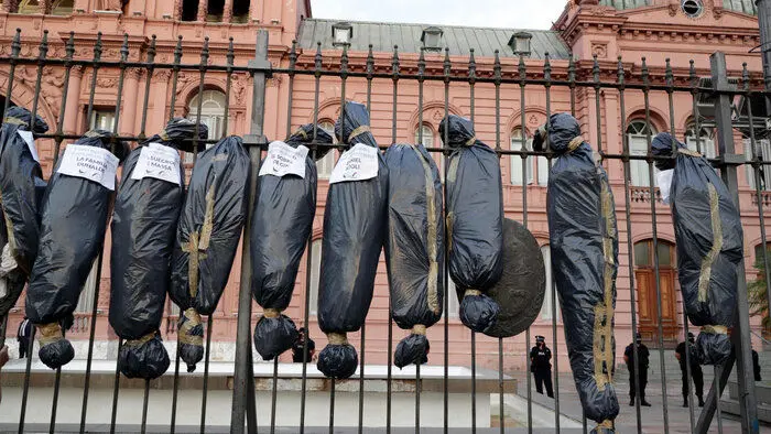 «آلبرتو فرناندز» رئیس‌جمهوری آرژانتین اما در انتقاد از شیوه غیرمعمول برخی معترضین در قرار دادن نمادین تعدادی کیسه‌های جنازه در مقابل مقر ریاست جمهوری (Casa Rosada) در صفحه توییترش نوشت، به نمایش گذاشتن کیسه‌های جسد با نام رهبران سیاسی نمی‌تواند روش اعتراض در دموکراسی باشد. متاسفانه این اقدام فقط نشان دهنده تعداد مخالفان جمهوری است. بیایید در برابر چنین اقدام وحشیانه ای ساکت نمانیم.
