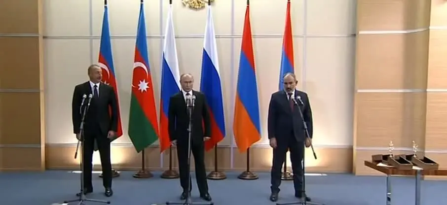 ولادیمیر پوتین رئیس جمهوری روسیه امروز جمعه در پایان دیدار سه جانبه با رئیس جمهوری آذربایجان و نخست وزیر ارمنستان از توافق الهام علی اف و نیکول پاشینیان برای حل اختلافات بین دو کشور خبر داده است.