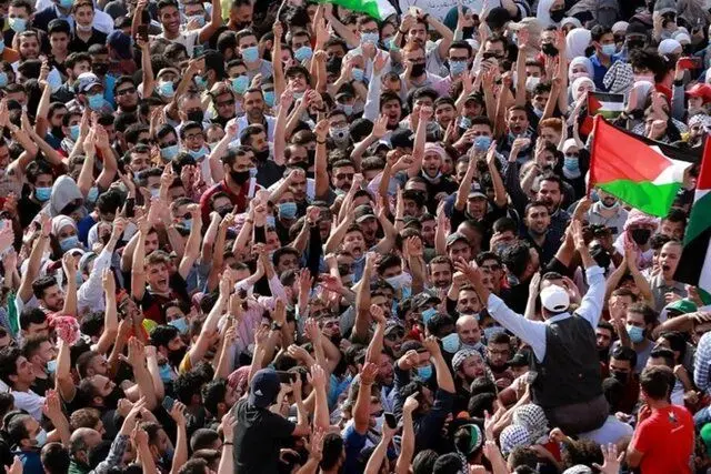 به گزارش منیبان از خبرگزاری آناتولی ترکیه، صدها اردنی در راهپیمایی که به دعوت گروههای مردمی، حزبی و صنفی اردن از مقابل مسجد «الحسینی» در امان، پایتخت این کشور آغاز شده و تا میدان «النخیل» ادامه داشت، شرکت کردند.