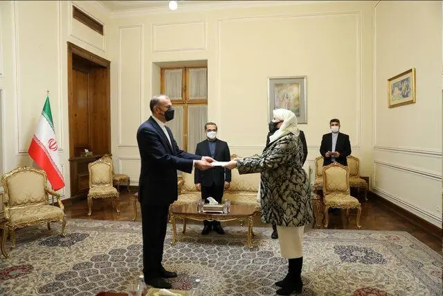 به گزارش منیبان، ساینا مک گینس سفیر آکرودیته جمهوری ایرلند در کشورمان، بعد از ظهر امروز یکشنبه ٢۴ بهمن 89 ١۴٠٠، در آغاز ماموریت خود، در دیدار با حسین امیر عبداللهیان وزیر امور خارجه، رونوشت استوارنامه خود به عنوان سفیر آکرودیته در جمهوری اسلامی ایران را به وزیر امور خارجه کشورمان تقدیم کرد.