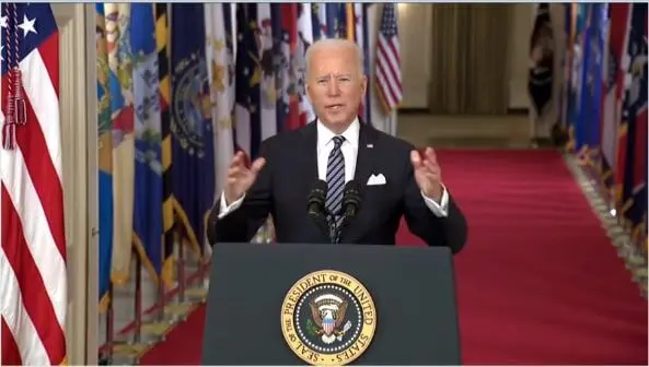 بایدن ادامه داد: برای همه شما که می‌پرسید چه موقع اوضاع به حالت عادی باز می گردد، واقعیت این است؛ تنها راه برای بازگشت زندگی و بازگشت اقتصاد، از بین بردن ویروس است. ۲ ماه پیش، این کشور تقریباً مقدار کافی واکسن برای واکسیناسیون کل یا نزدیک به همه مردم آمریکا نداشت اما به زودی خواهیم داشت.