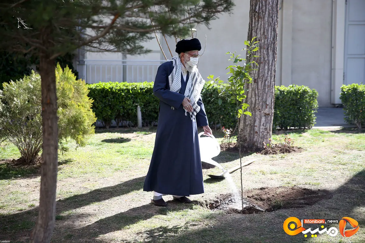 طبق سنت هر ساله، رهبر انقلاب پیش از ظهر امروز بمناسبت روز درختکاری دو اصله نهال میوه کاشتند.