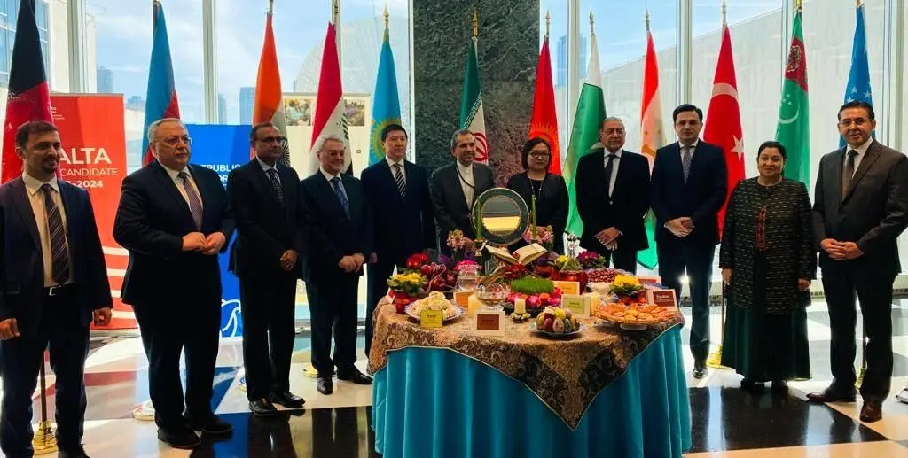سفرا و نمایندگان ۱۲ کشور حوزه نوروز، سه شنبه بر سر سفره هفت سینی که توسط نمایندگی ایران در مقر سازمان ملل برپا شده بود، گرد هم آمدند.