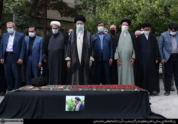 واکنش آقا نشان میدهد که این محبت قلبی، دوجانبه است و متقابل: «همینجور است. ما هم نسبت به شما همین احساس را داریم.» پیکر را عصر دوشنبه، ساعتی قبل از اذان مغرب، آورده بودند تا نماز آن مرحوم توسط خود آقا اقامه شود؛ پیچیده در کتیبهای مشکی مزین به زیارت عاشورا و عرض ارادتی به آستان حضرت سیدالشهدا علیهالسلام و حضرت اباالفضلالعباس علیهالسلام. آقا جلوتر از همه، مقابل پیکر میایستند به نماز و پشتسرشان هم سه ردیف آقا و خانم صف میبندند؛ اطرافیان و نزدیکان مرحوم هستند و طبیعی است که لابهلای ادای عبارات نماز یکی دو مرتبهای هم بغضی بشکند و گریه و اشکی را هم روانه صورت کند.