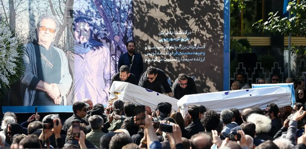 مراسم خاکسپاری داریوش مهرجویی و همسرش وحید محمدیفر در تالار وحدت بهشت زهرا با حضور خانواده مهرجویی و همسرش و همینطور با حضور هنرمندان مطرح در حال برگزاری است.