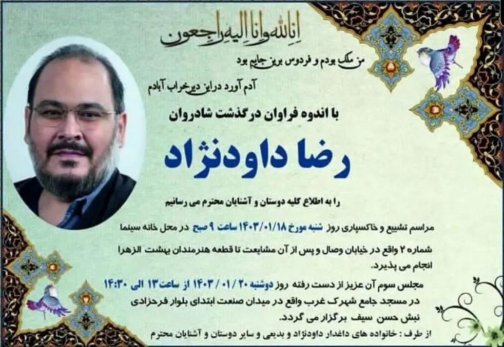 اعلام زمان برگزاری مراسم یادبود و تشییع رضا داودنژاد