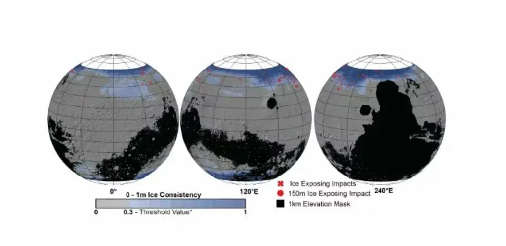 ذخایر یخآب مریخ راهحل این مسئله است. یخ زیادی در سطح اطراف قطبهای مریخ وجود دارد، اما بیشتر مأموریت کاوشگران روی منطقه استوایی این سیاره متمرکز است. طبق نقشههای ناسا، در مناطق استوایی نیز یخ وجود دارد، اما مسئله این است که این یخها در زیر سطح مدفون هستند و دسترسی به آن دشوار است.