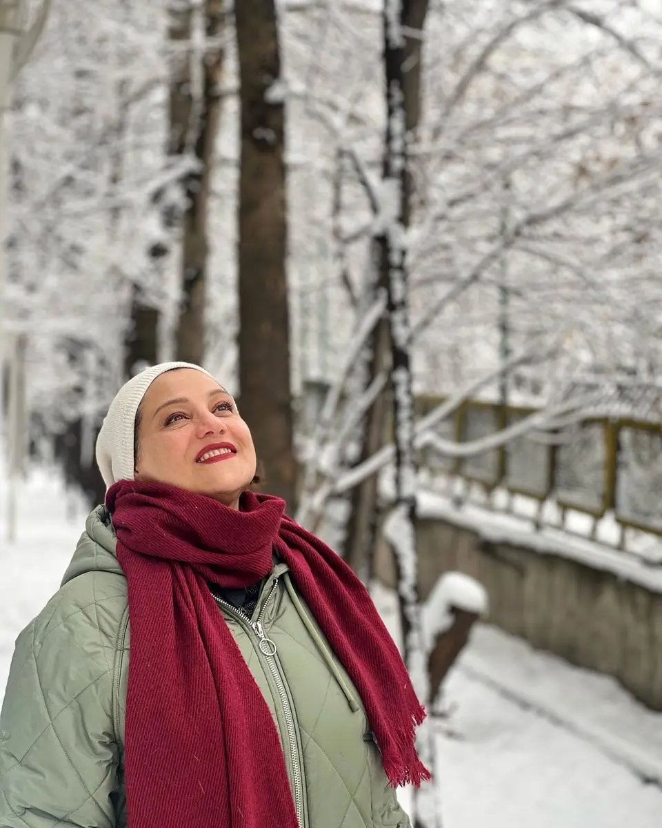 تصاویری از شبنم مقدمی در روز برفی تهران منتشر شده است.
