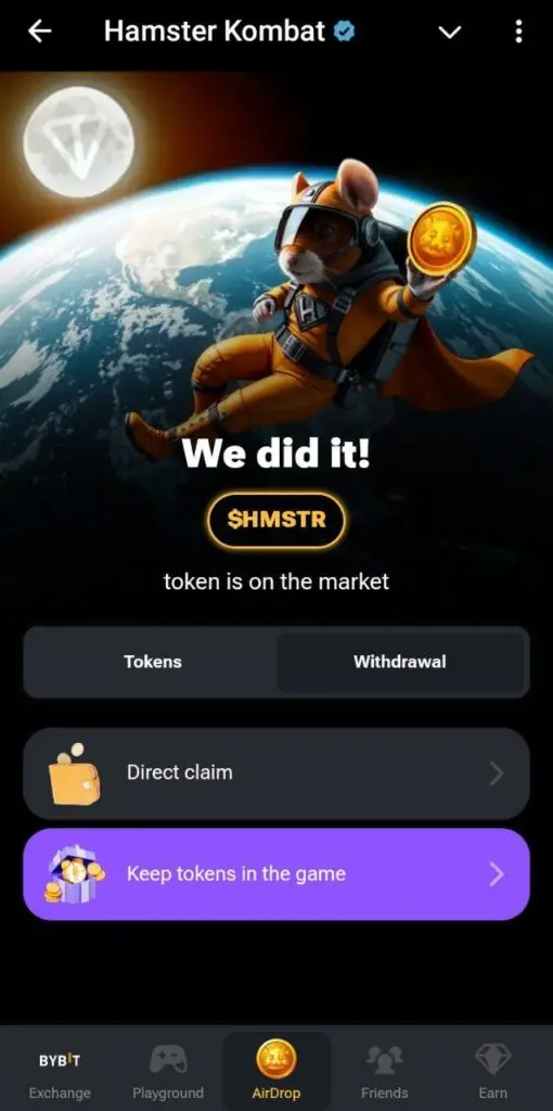 بازی همستر کامبت اعلام کرد که گزینه مربوط به حفظ توکن HMSTR در پلتفرم خود را به بخش Airdrop اضافه کرده است. در نتیجه کاربرانی که هنوز توکنهایشان را کلیم یا برداشت نکردهاند، میتوانند ذخایرشان را با انتخاب گزینه Keep tokens in the game درون بازی مذکور نگه دارند.