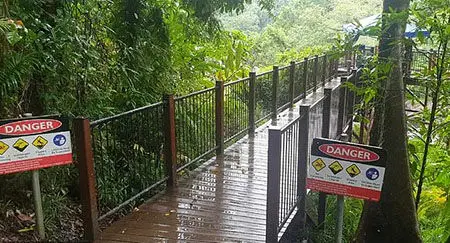 سنگ های مرطوب به شدت لغزنده هستند. مراقب بالا آمدن سریع آب باشید. در نهر اصلی ، پایین دست این نقطه شنا نکنید. این مسیر فقط برای بازدید است. برای ایمنی خودتان به پیاده روی در امتداد مسیر ادامه دهید.
