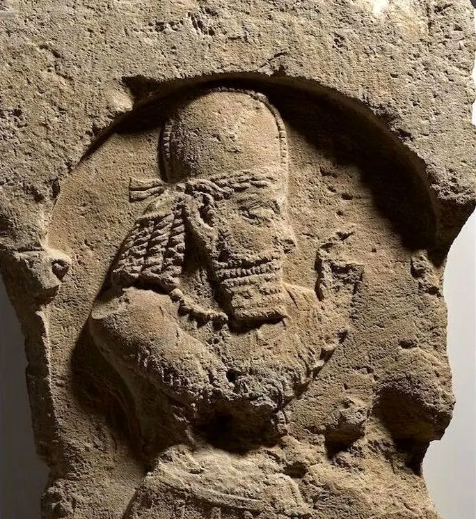 نقشبرجسته ساسانی ۱۶ ژانویه ۲۰۱۶ (۲۶ دیماه ۱۳۹۴) در فرودگاه لندن پیدا شد. در ماه مارس (حدودا دو ماه بعد) موزه بریتانیا، موزه ملی ایران را از وجود این نقشبرجسته مطلع کرد. موزه ملی ایران حدودا هشتم مارس ۲۰۱۶ به موزه بریتانیا اعلام کرد که این اثر منشأ ایرانی دارد و حتما باید به ایران برگردد، ولی تا سال ۲۰۱۹، مالک اثر هنوز ادعا داشت. هرچند هویت مالک مدعی این نقشبرجسته همچنان نامعلوم است، اما رییس کل موزه ملی ایران که اکنون این نقش برجسته را به نمایش گذاشته است، گفت فرد مدعی در سال ۲۰۱۹ از مالکیت منصرف شده و شیء در اختیار موزه بریتانیا قرار گرفته است. این موزه شیء را مرمت میکند، چون در هنگام انتقال (به لندن) سه تکه شده بود. نقشبرجسته پس از سه ماه نمایش در موزه بریتانیا به ایران برگردانده میشود.