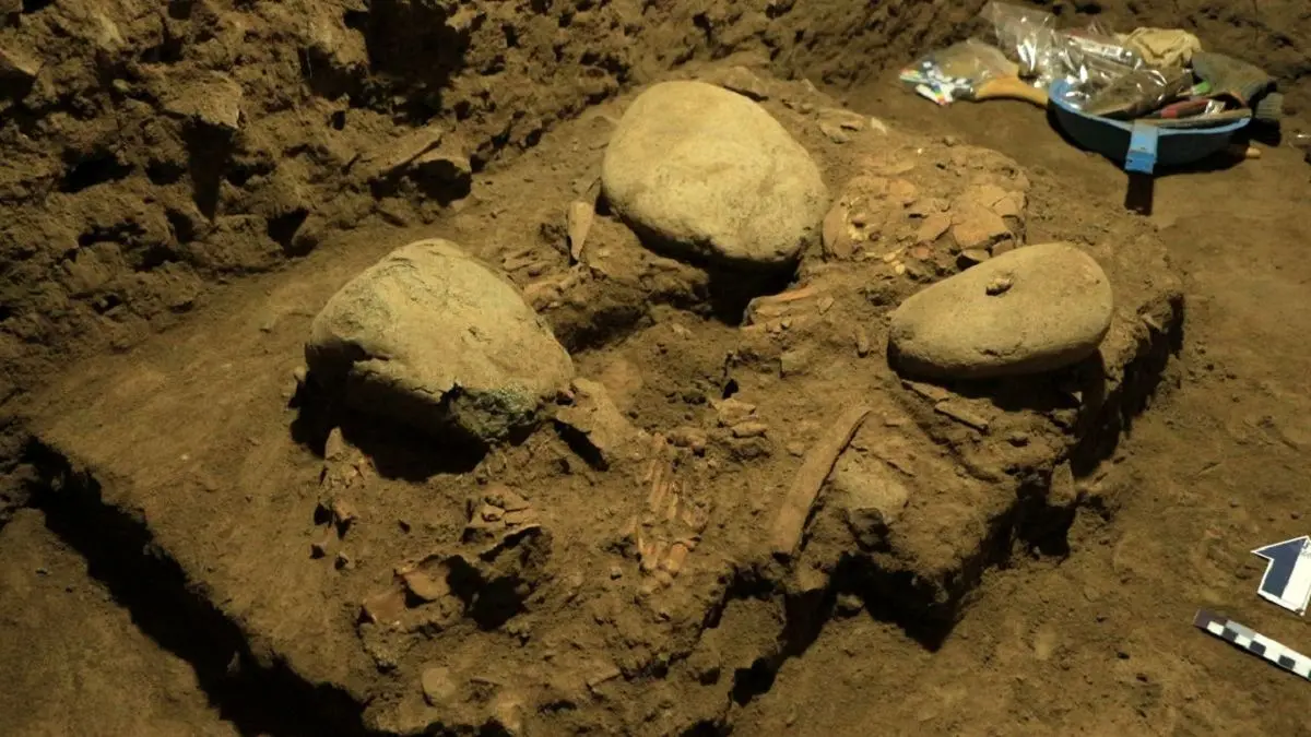کشف اسکلت ۴ هزار ساله یک زن با نوزاد در شکمش/ فیلم