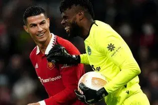 تصاویر شوخی و خنده‌های کریستیانو رونالدو با دروازه‌بان اومونیا که دیشب مانع از به ثمر رسیدن گل هفتصد و یکم باشگاهی او شد با واکنش‌های زیادی مواجه شده است.